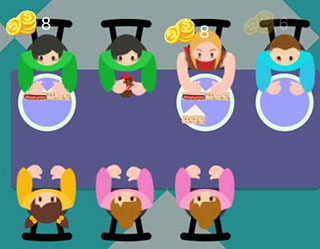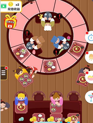 1、支持自由装修餐厅布局,同时可招募店员提升上菜效率,从而加速金币收益。