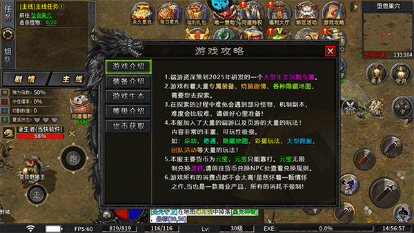 7、最后,点击屏幕右上角的“游戏攻略”,可查看关于装备获取、生态体系、等级成长及货币来源等详细说明。
