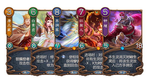 卡牌角色悉数源自中国古典神话传说,如“孙悟空”、“哪吒”、“姜子牙”等经典人物皆可召唤上阵。不仅如此,角色特性也被巧妙融入卡牌机制——例如召唤“孙悟空”后,其相邻空位会自动生成“小猴精”,还原原著精髓的同时增强策略深度。
