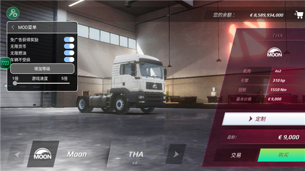 3. 选择“购买新车库”进入车辆商店,使用无限金币直接购买心仪卡车;