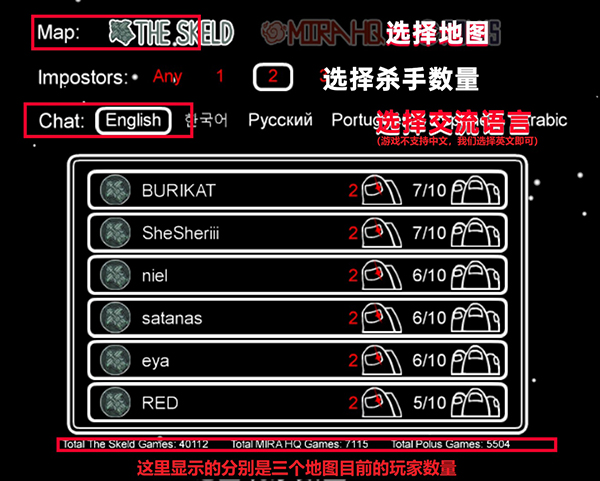 一般情况下都是内鬼2人(也叫狼),船员8人(也叫好人),common task一般为2个,long task一般就一个,short task一般为4-5个。紧急会议(又称拍板)一般次数为1次,大部分房间只允许场上存活人数为六人以下的时候发起紧急会议,而有的逻辑房是不允许紧急会议的。杀人cd一般为27.5秒或者30秒,紧急会议的cd一般略短与杀人的cd。