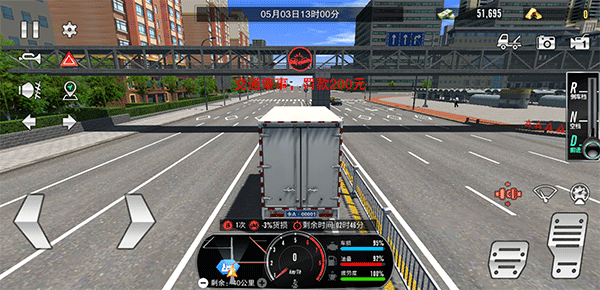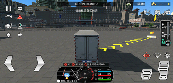 5、运输途中,请根据下方地图导航驶向目的地。务必系好安全带(位于刹车图标上方的红色按钮),并严格遵守交通规则——任何违规或碰撞都将导致罚款及货损,直接影响最终收益。