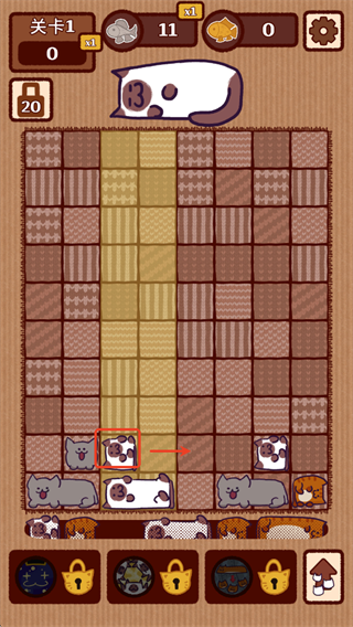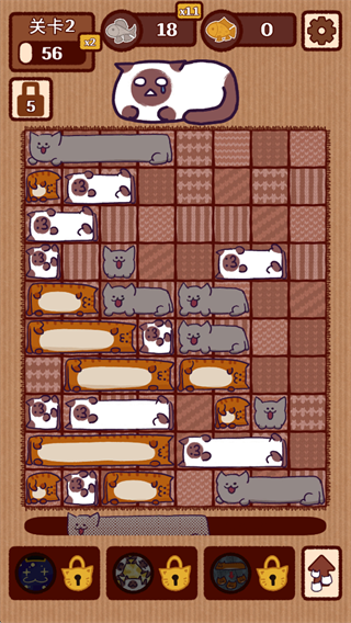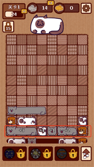 猫咪滑块是一款以猫咪为主题的消除手游,游戏玩法简单,但策略性较强,玩家需要用类似俄罗斯方块的方式,将棋盘上给出的形状各不相同的猫咪放置在同一行当中,用来消除,一些特殊的猫咪还可以触发不同的特效,帮助玩家更有效的进行消除。猫咪滑块游戏没有时间限制,且一次只能挪动一只猫咪,玩家需要根据现有的猫咪以及即将出现的小猫咪进行布局,让你的思维变得更加敏锐!