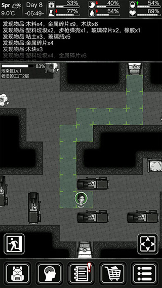 心情不仅影响心理健康,还能反哺健康值;而极端温度也会缓慢侵蚀健康。前期需谨慎管理资源,中后期可通过制作抗生素、种植作物、使用烟酒等方式维持状态。所有行动结果、道具获取及角色状态变化均实时记录在状态栏中,便于玩家精准掌控生存节奏。