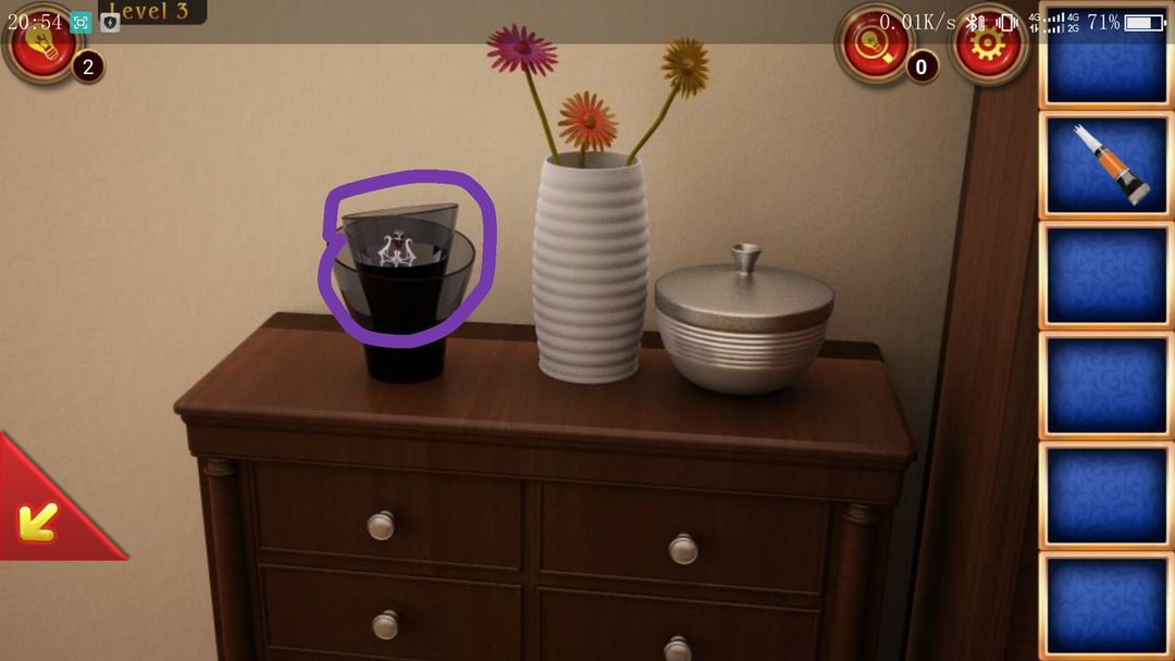 点击③处,用钥匙打开柜子,取得一个白色花瓶。