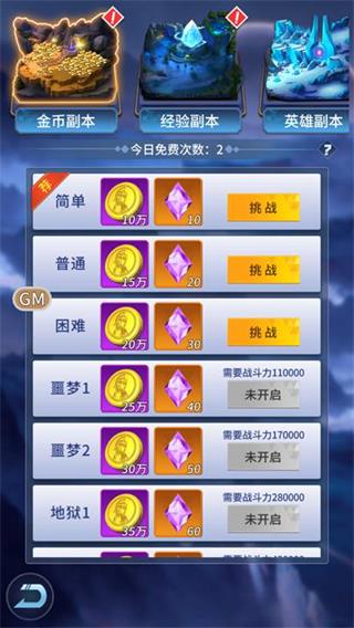每日提供2次免费挑战机会,通关后可获得大量金币,难度越高奖励越丰厚。