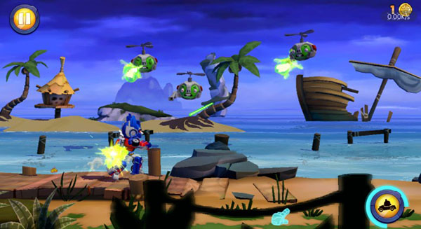 在跑酷过程中实时操控变形金刚鸟进行射击,精准打击藏身障碍后的目标。