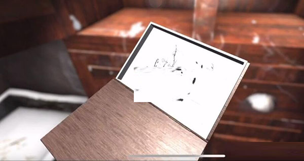 1.进屋后找到桌子旁的残诗二,点击旁边的板子拿到残诗一