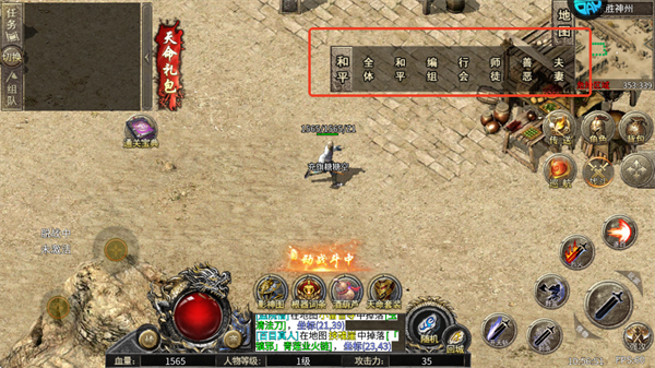 3、游戏内设有全体、和平等多种战斗板块,可根据当前目标自由切换模式。