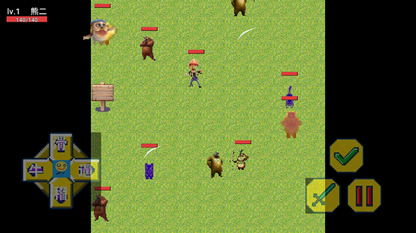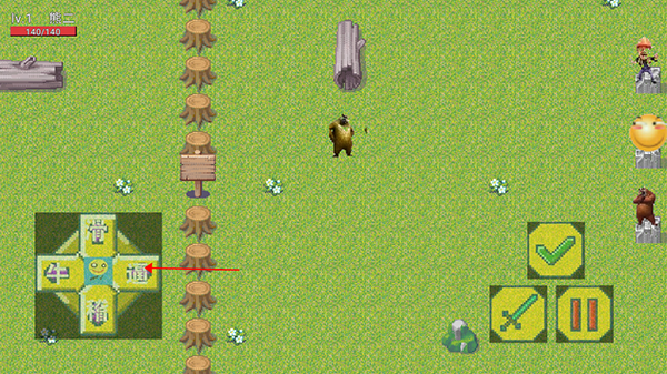 2、然后我们扮演熊二,通过如图的虚拟按键移动;