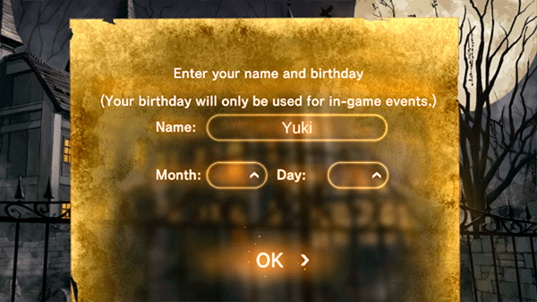 2、创建角色时输入自己的名字并选择出生日期。