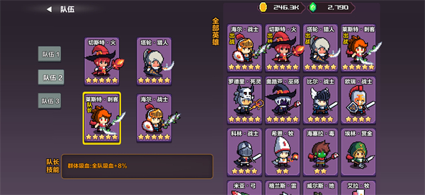 队长技能方面,推荐选择莱斯特的吸血效果,配合装备吸血词条,可完全摆脱对奶妈的依赖。