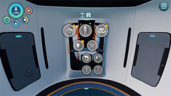 1、游戏开始我们在一处冰川中,首先需要熟悉游戏的键位以及作用,其中包括移动、跳跃、交互,左上角代表主角各项状态,右上角面板中可以查看物品蓝图以及日志资料。