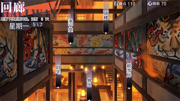 1、完成序章剧情后,玩家将回到自宅场景,此后需主动操作推进剧情。可外出探索多个区域,部分地点需满足特定条件(如好感度、剧情进度等)方可进入。