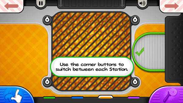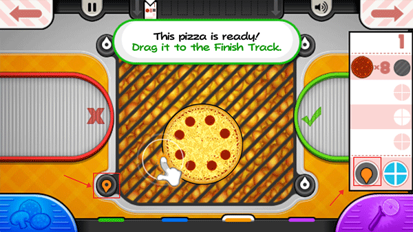 9、烘烤过程中需密切关注火候,当左下角的“火”图标变为橙色时,表示披萨已烤好,可移至切割站处理。