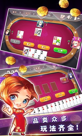 双重牌组机制颠覆传统:采用2副标准扑克共108张牌对战,牌型组合爆炸式增长,顺子更长、炸弹更多、反杀更爽,每一手牌都需权衡概率、记牌逻辑与团队协作,真正实现“运气开局,策略定局”。