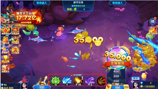 3、开炮会消耗金币,成功捕获鱼群后可获得对应数量的金币奖励。