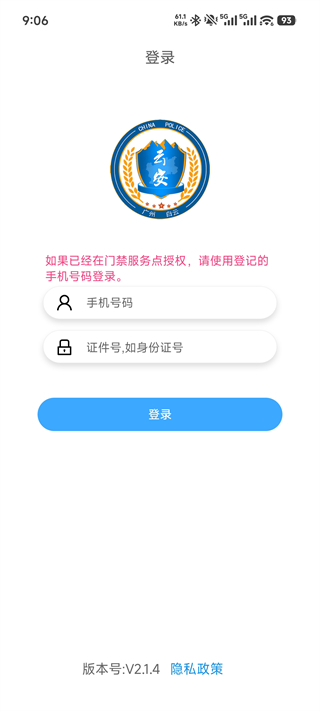 首次使用需输入本人登记的手机号及有效身份证件号码完成公安实名认证,确保人证一致、权限精准归属。