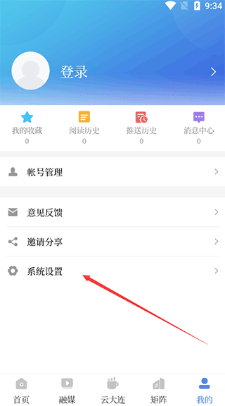 1. 启动App后,点击底部导航栏右下角【我的】→ 进入【系统设置】;