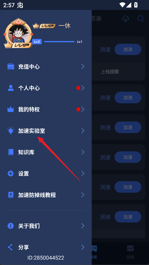 2、在侧边栏选择【加速实验室】,开启前沿加速模式;