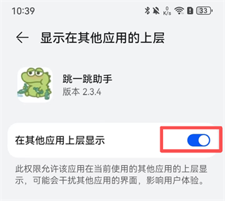 1、授予悬浮窗权限:进入手机【设置】→【应用管理】→【跳一跳红线辅助器】→【显示在其他应用上层】→开启开关;