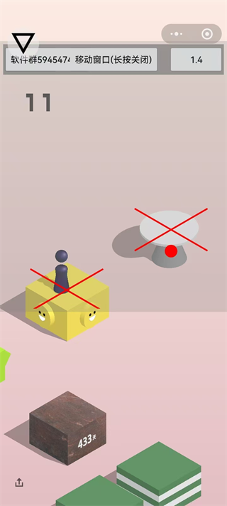 它复刻了经典休闲游戏的成熟瞄准逻辑——像《愤怒小鸟》用曲线预判弹道,像台球瞄准器用直线锁定目标,将抽象的“蓄力时长→跳跃距离”关系,转化为直观、可校准的视觉反馈。开启后,红线自动对齐方块中心,让你一眼看穿“该按多久、往哪松手”,真正把运气变成实力。