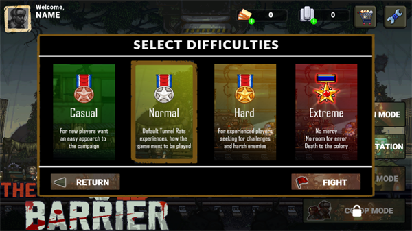 3. 自选难度等级 → 点击【FIGHT】正式开战;