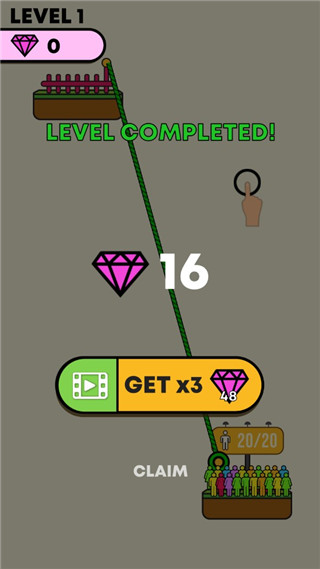下载安装后直接启动,新手引导无缝接入第一关——无需复杂教程,直观理解“锚点-绳索-滑行”核心循环。