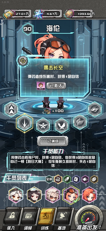 新手角色可能不全也不满命,前期可以玩玩弹药类角色用紫色1命的逸尘(他可以消耗弹药来处理小僵尸避免我们掉耐久)配合2命的海伦(回弹增伤)或者2命的千鹤(增伤)。之后我们有材料合成讲道理就可以替换掉逸尘,换上满命的奥雷塔。