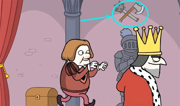 比如老国王的儿子,这个黄头发,头上戴着金箍的王子。他可不是什么好人,觊觎王位已久,又畏惧老国王,刺客就是他找来的也说不定。这时候刺客当了国王,他哪还能忍得住,抄起家伙就准备步老国王的后尘。
