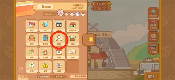 选择图鉴后,我们可以看到每个旅馆主题都有三个奖励,分别是猫猫、家具和好感度奖励,其中家具奖励(50金枪鱼)最容易拿,因此大家在买完家具后一定要记得去领奖励。