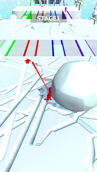 5、雪球足够大后,找到和你一样的颜色,利用雪球铺路过桥;