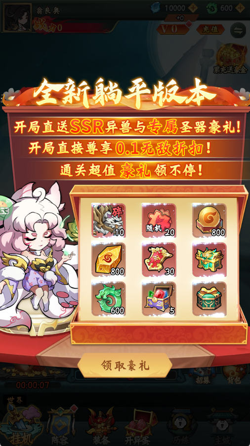 2、首日即送SSR级异兽+专属圣器+满额仙玉,战力瞬间拉满;