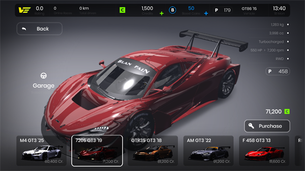 街道赛(轻量化入门)、GT4(均衡操控)、GT3(性能与调校深度标杆)、LMP(原型车空气动力学挑战)、F4(单座方程式基础)、F1(终极拟真——含可调DRS、ERS能量管理模拟)。每个级别不仅外观不同,更在重量分布、空气阻力系数、动力响应曲线、轮胎工作窗口等底层参数上严格区分,拒绝“换皮式”赛事设计。