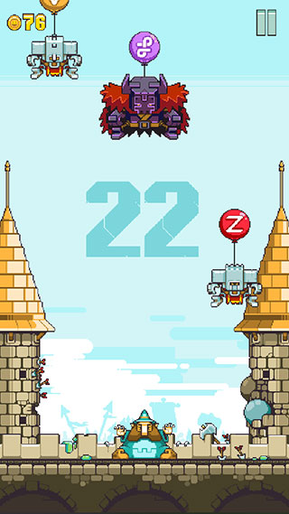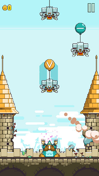 颠覆对像素游戏的刻板印象:角色动作细腻流畅,巫师施法时胡须微颤、魔法帽随节奏轻晃;场景色调大胆浓烈,城堡砖石纹理清晰,机械敌人关节咬合生动。配合紧凑的BGM与清脆的气球爆破音效,每一次精准绘符都带来强烈的正向反馈,越玩越上头。