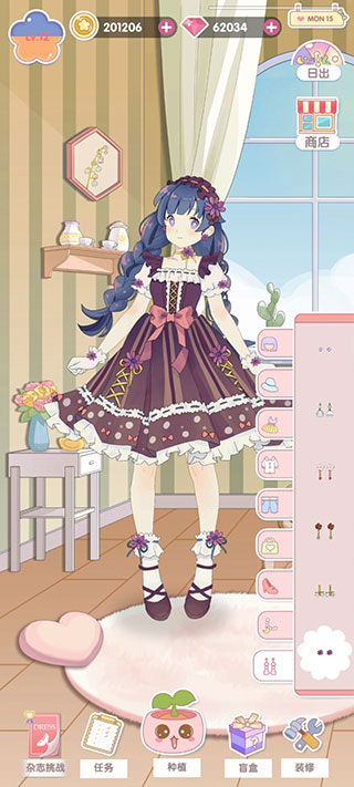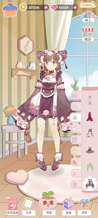 这不是一款单纯的换装游戏,而是一座会呼吸的虚拟花园:清晨露珠微闪、午后阳光斜洒、夜晚星光漫溢——6大动态时段无缝衔接,春樱、夏荷、秋枫、冬雪四时流转,场景光影实时变化;搭配萌系画风、温暖配色与细腻角色演绎,每一帧都是治愈系壁纸级体验。