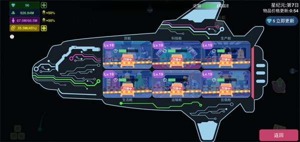 ► 飞船即战力中枢:舱室升级直接决定探索半径、载货容量、生产效率与生活上限——飞船越强,星域越广