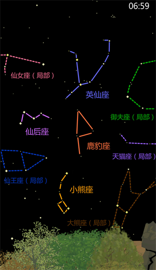6月30日 05:59 可收集:蝎虎座、仙女座、仙王座、仙后座、鹿豹座、小熊座