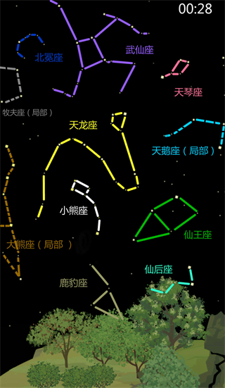 ② 00:28 可收集:北冕座、武仙座、天琴座、天龙座、小熊座、仙王座、仙后座、鹿豹座