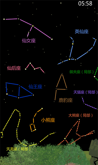 ① 19:05 可收集:仙王座、小熊座、牧夫座、猎犬座、北冕座、天龙座