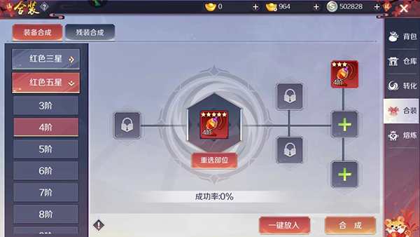 五件合成概率显著降低。最优解:先用三次“两件合成”探底(成本低、容错高);若全败,则切换至三件/四件组合策略,最大化保底收益。高级红装本就稀缺,每一次合成,都是对资源规划能力的终极考验。