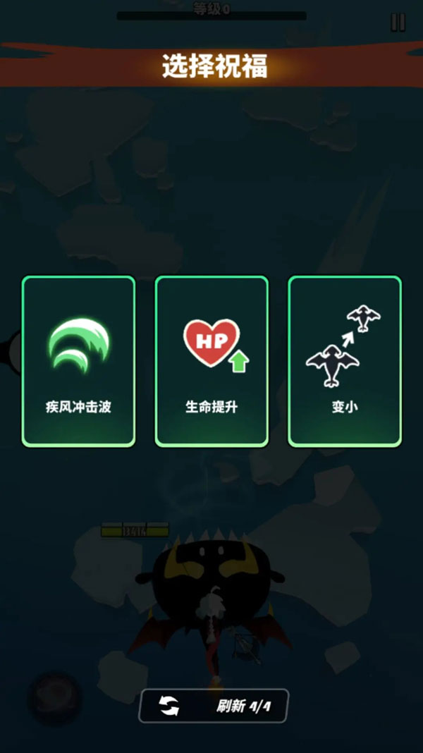 每局战斗均从Lv.1飞龙起步,击杀敌人积累经验升级,每次升级必触发「三选一祝福」系统:强化龙焰伤害、扩大攻击范围、附加火/冰/雷/毒/风元素效果,或解锁冲击波、旋转球、符文等独特机制。连续选择同类祝福可激活1~3层羁绊,LV.3羁绊直接改写战局规则——比如【龙焰】满羁绊后,每3发自动合成1发穿透全屏的蓝色龙焰;【雷系】满羁绊则触发连锁闪电,清屏如呼吸般自然。