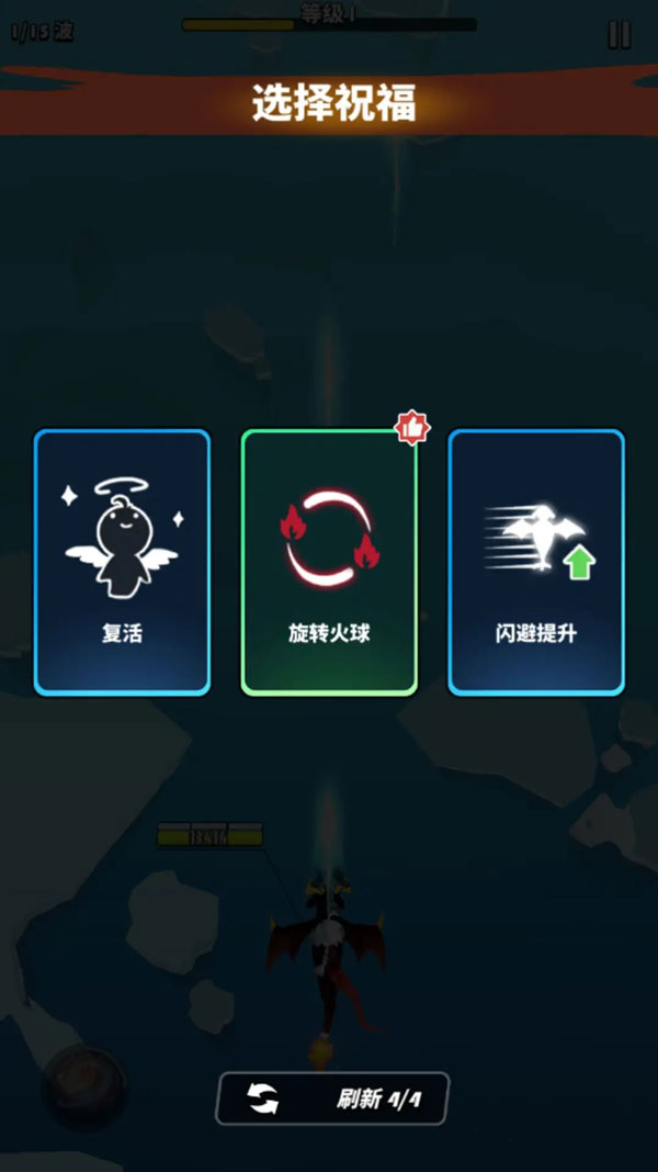 祝福分为「普通祝福」与「特殊祝福(羁绊向)」两类。普通祝福提供稳定面板加成(如爆伤+15%、闪避+8%),虽不触发羁绊,但在特定场景下极具奇效——例如耗尽复活次数时刷出「复活祝福」,瞬间化身不死战神;特殊祝福则绑定专属羁绊类型(龙焰/武器/冲击波/符文/元素),集齐3个同类型即可激活对应羁绊,且支持跨局累计。羁绊效果分两大维度: