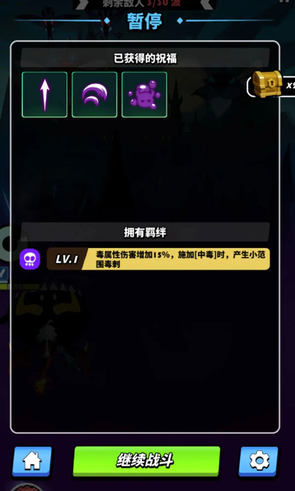 ③ 关注祝福品质,解锁封印天赋后可提升高品质祝福出现概率,同类型祝福优先选更高品质版本。随时点击右上角暂停键,实时查看已选祝福与羁绊激活状态,动态调整后续策略。