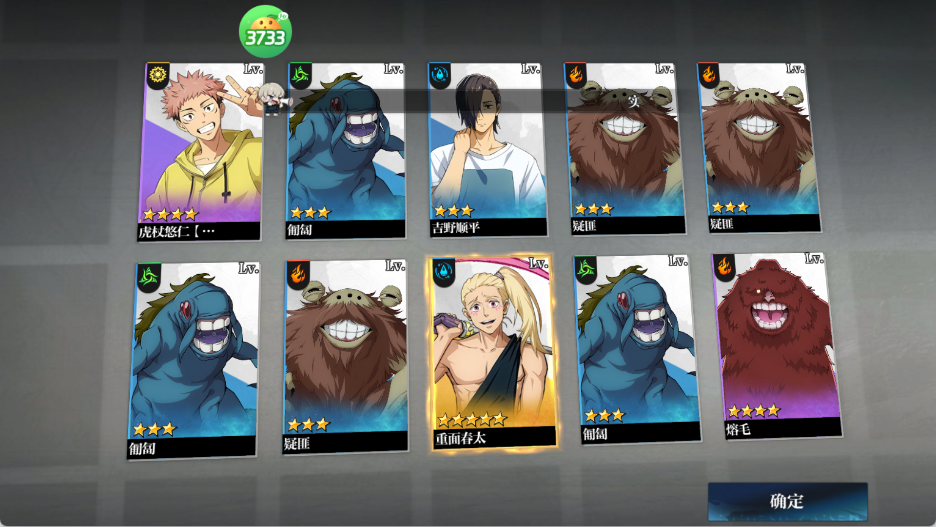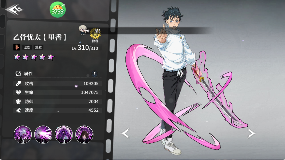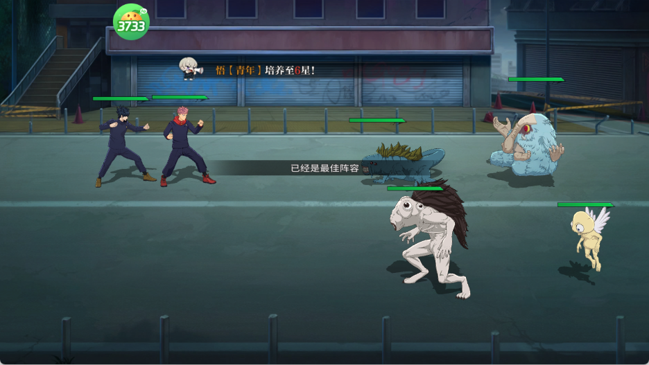 两面宿傩(无视防御)+ 夏油杰(群体咒灵)+ 乙骨忧太(领域增伤)+ 虎杖悠仁(黑闪暴击)+ 七海建人(减抗辅助)——单次爆发超300万,秒杀一切精英怪。