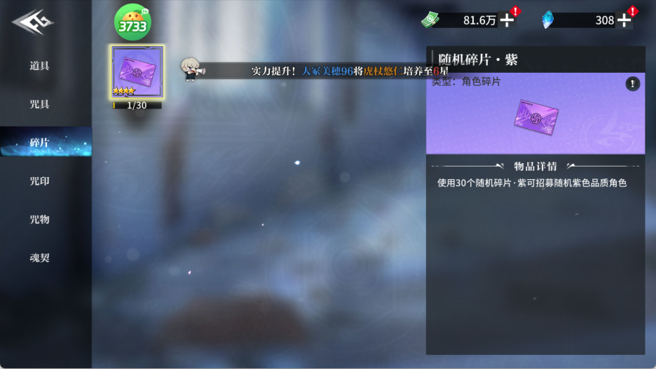 道具商店(VIP专属):VIP5解锁7折、VIP8解锁5折特权,重点囤积“咒灵结晶”(升星刚需)、“领域核心”(技能突破必需),价格仅为商城售价的1/2;