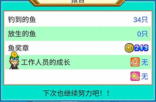 钓鱼功能于第1年10月开启,是游戏中最具策略纵深的模块之一。员工钓鱼可提升钓力与体力(钓获越多,成长越显著),并关联三大属性:甩钩距离(由钓力决定)、可钓重量(由钓力决定)、钓鱼体力(由体力决定)。道具与甩竿方式可动态调节这三项参数,实现精准控场。