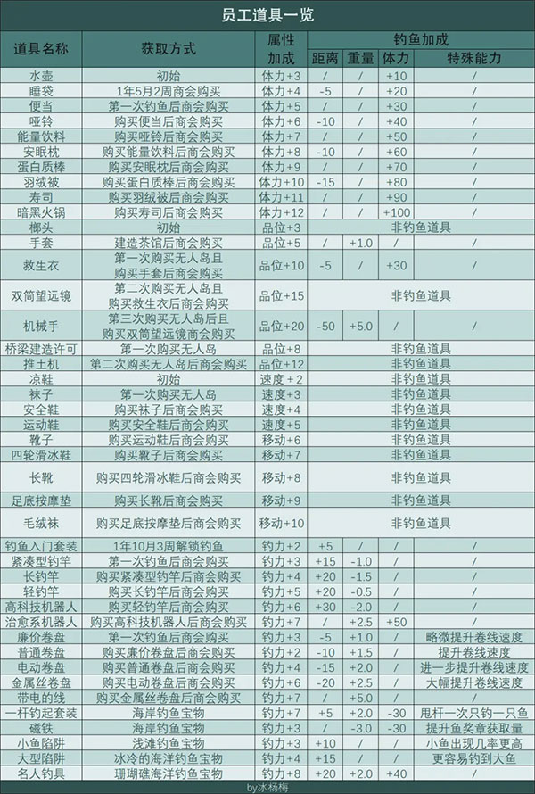 员工道具不仅强化基础属性,部分更可在钓鱼时装备,直接调节甩钩距离、可钓重量与钓鱼体力三大核心参数,实现精准策略适配。