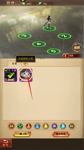 3、点击需要上阵的同伴,保存阵容;
