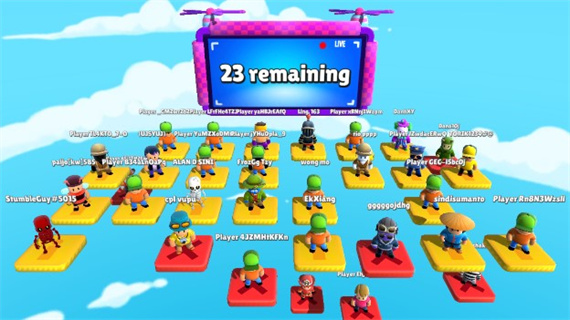 3、每关淘汰制:成功抵达终点者晋级,失败者从格子平台坠落出局;剩余玩家自动进入下一关,直至决出最终冠军;